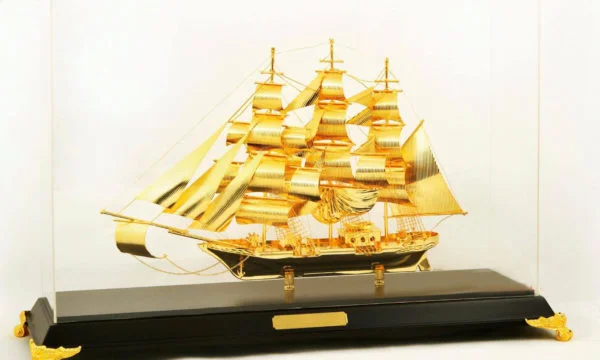 Thuyền Buồm Bằng Vàng Khung Gỗ cao cấp – Thuận buồm xuôi gióMÔ HÌNH THUYỀN BUỒM CAO CẤP
