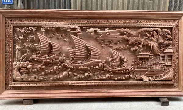 Điêu khắc tỉ mỉ, sắc nét trên nền gỗ dầy 20 cm ... kênh bong 5-7 tầng.